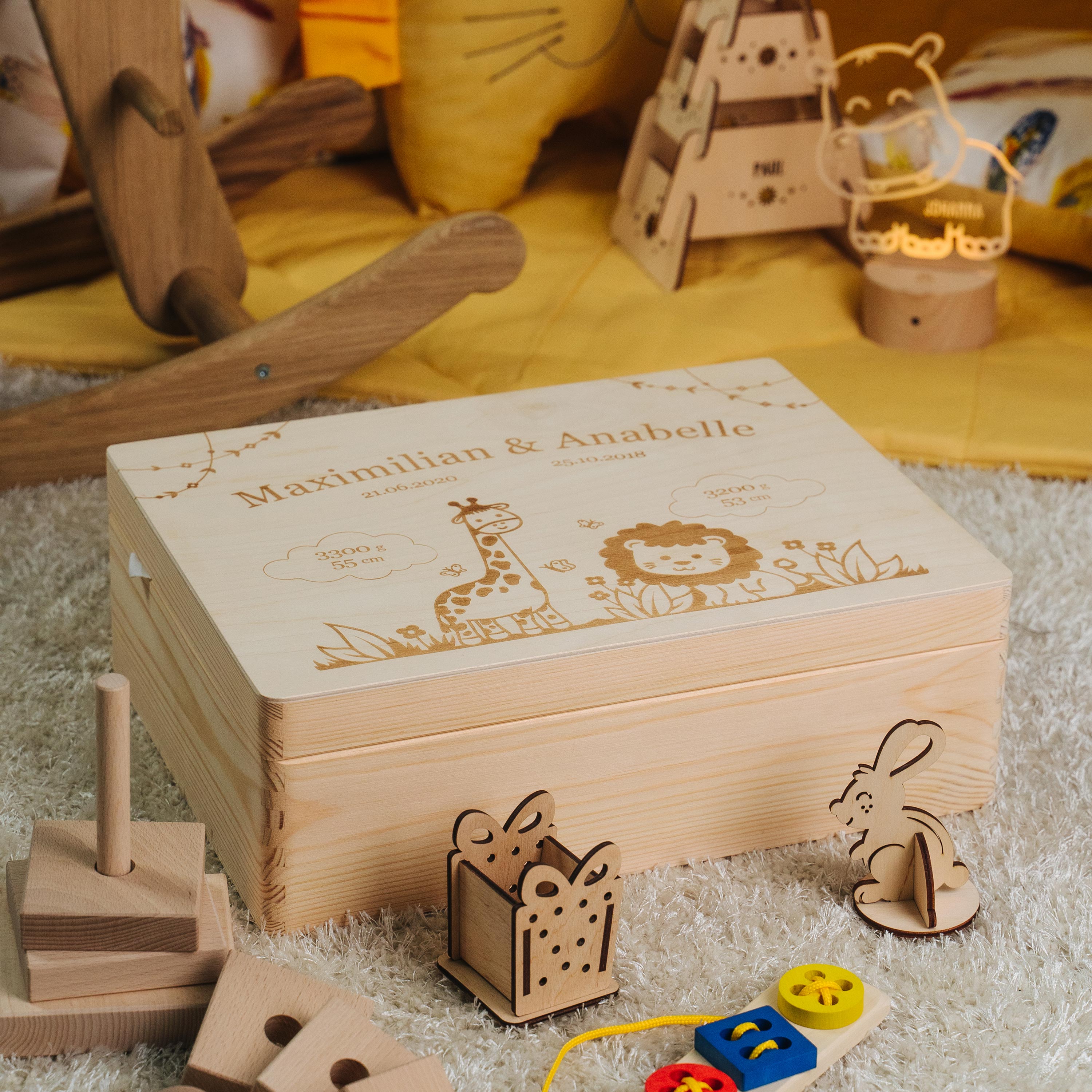 Erinnerungsbox für zwei Kinder - Personalisiert - Dschungel Serie - Natur - Holz FSC®