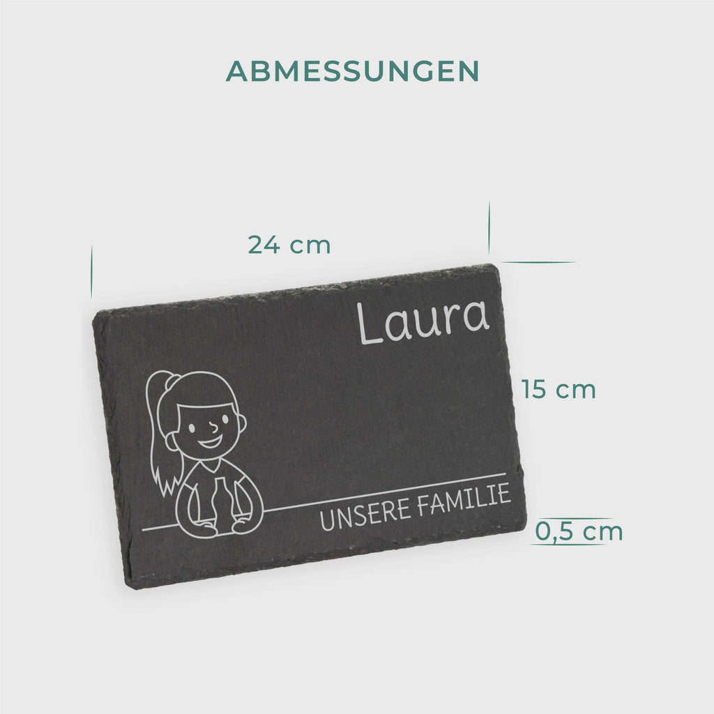 Frühstücksbrettchen für Kinder mit Gravur - Personalisiert mit Namen - Große Tochter "Unsere Familie" | Schieferstein - Geschenk von Eltern