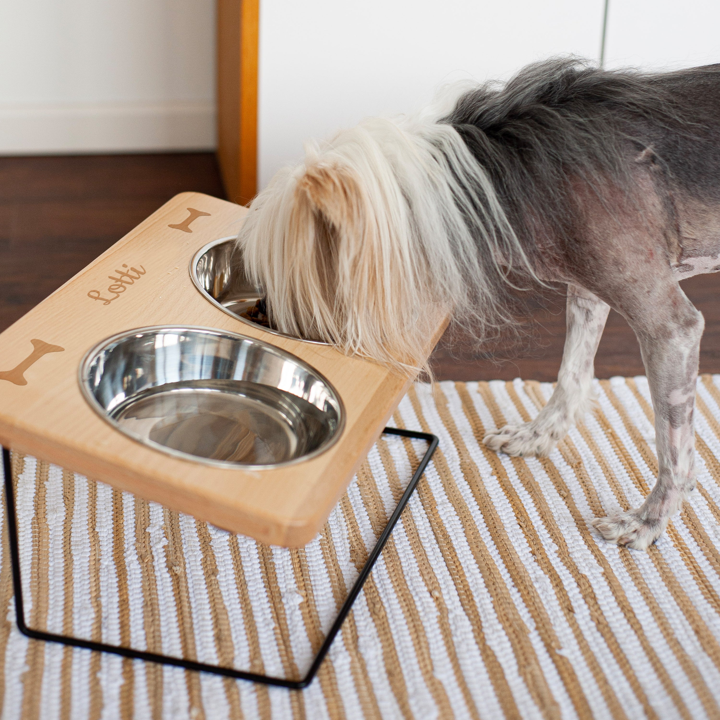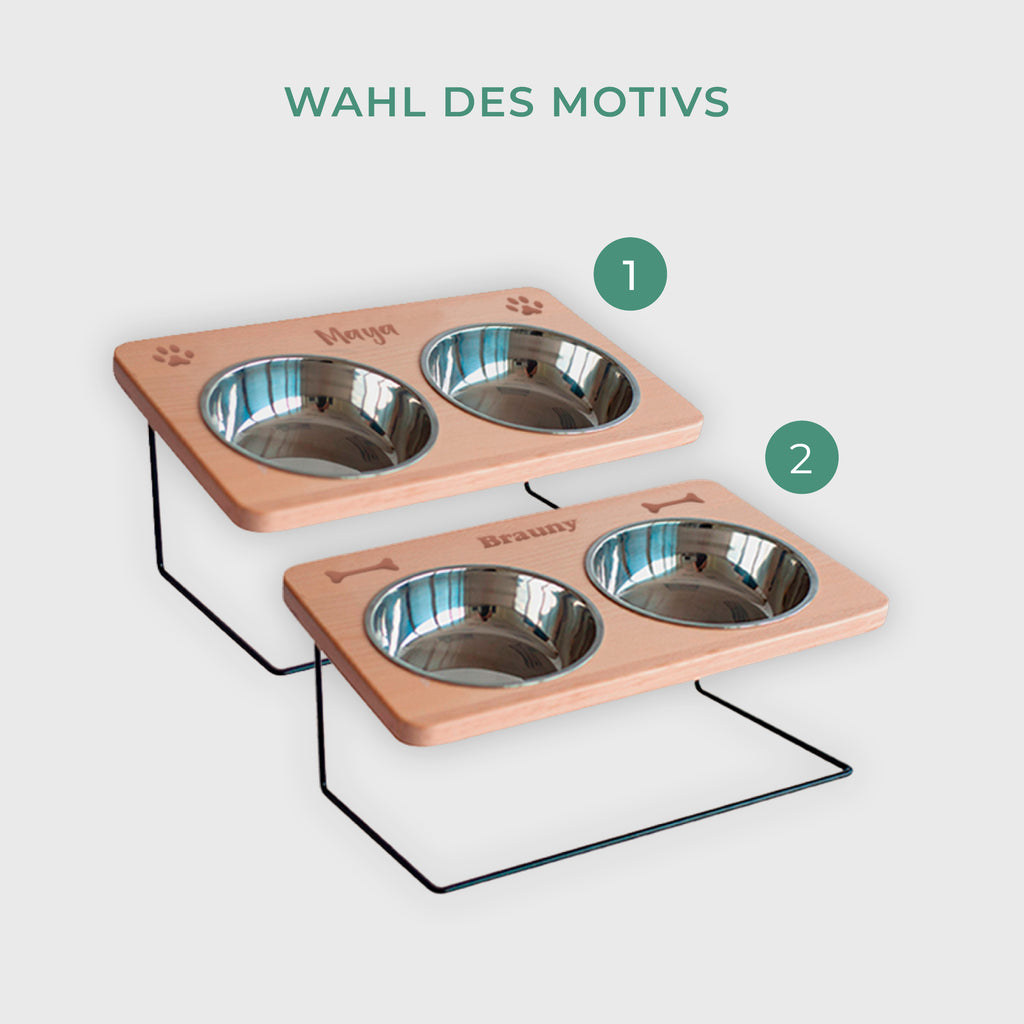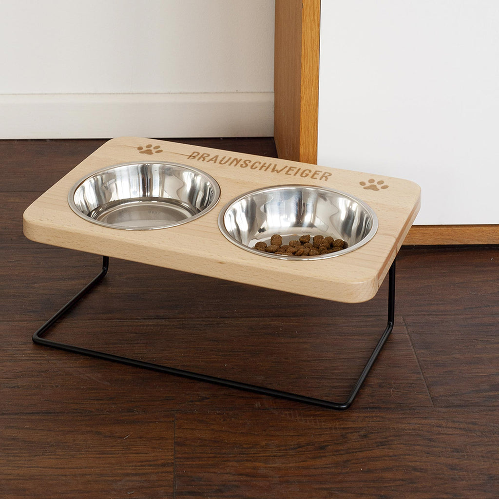 Futterstation für Hund & Katze - Personalisiert - mit Metallgestell - Natur