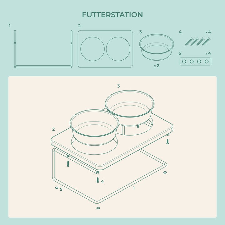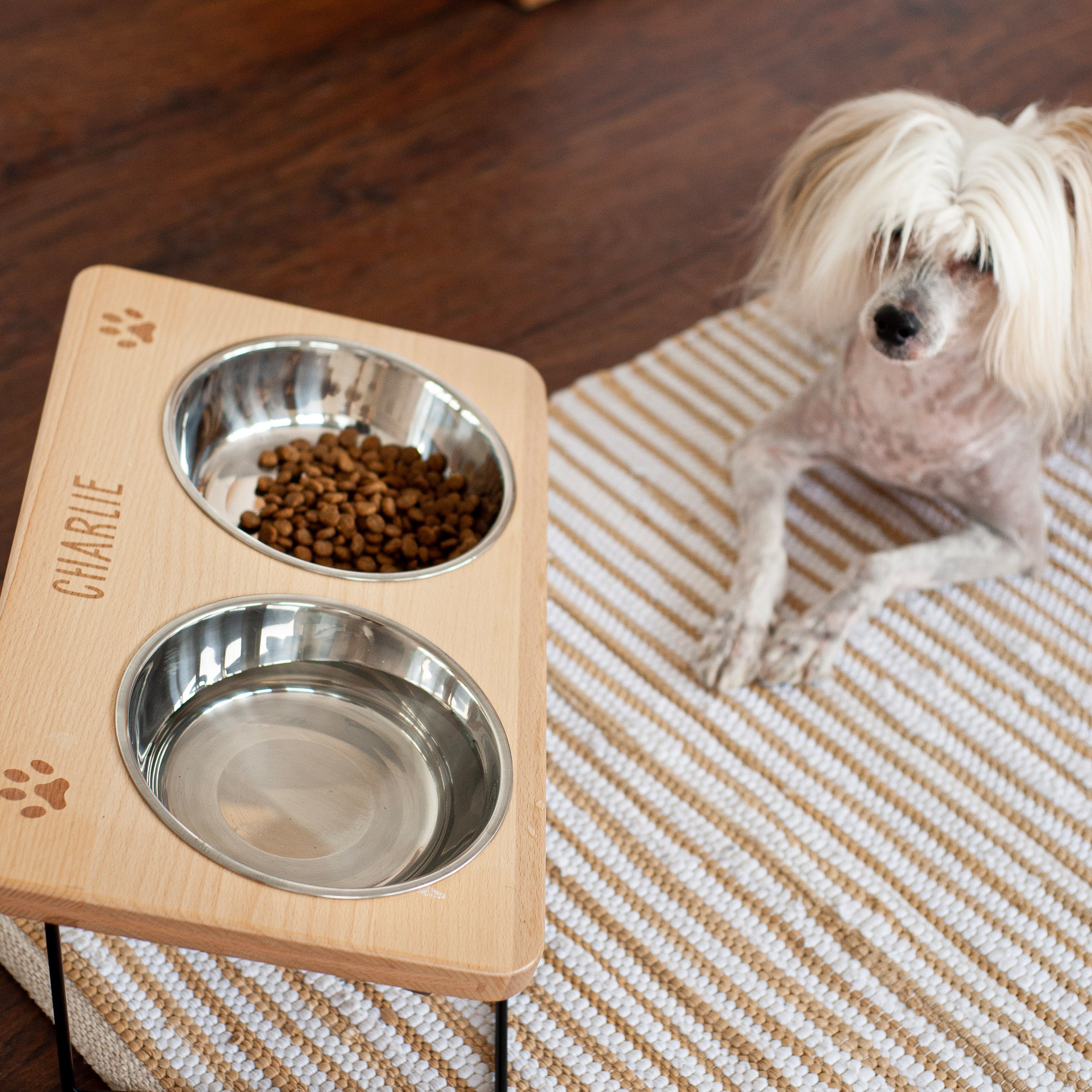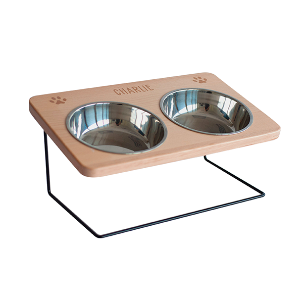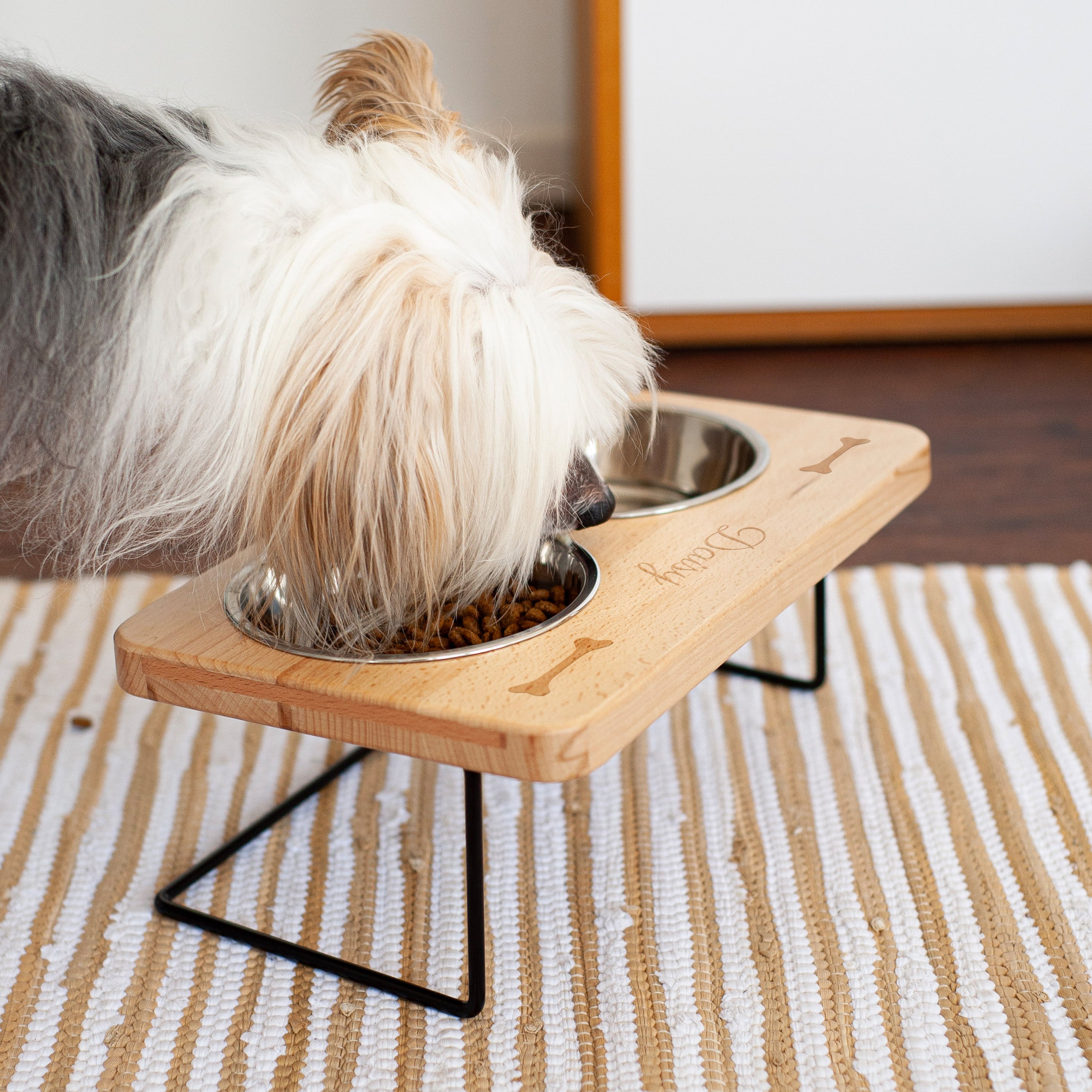 Futterstation für Hund & Katze - Personalisiert - mit Metallgestell - Natur
