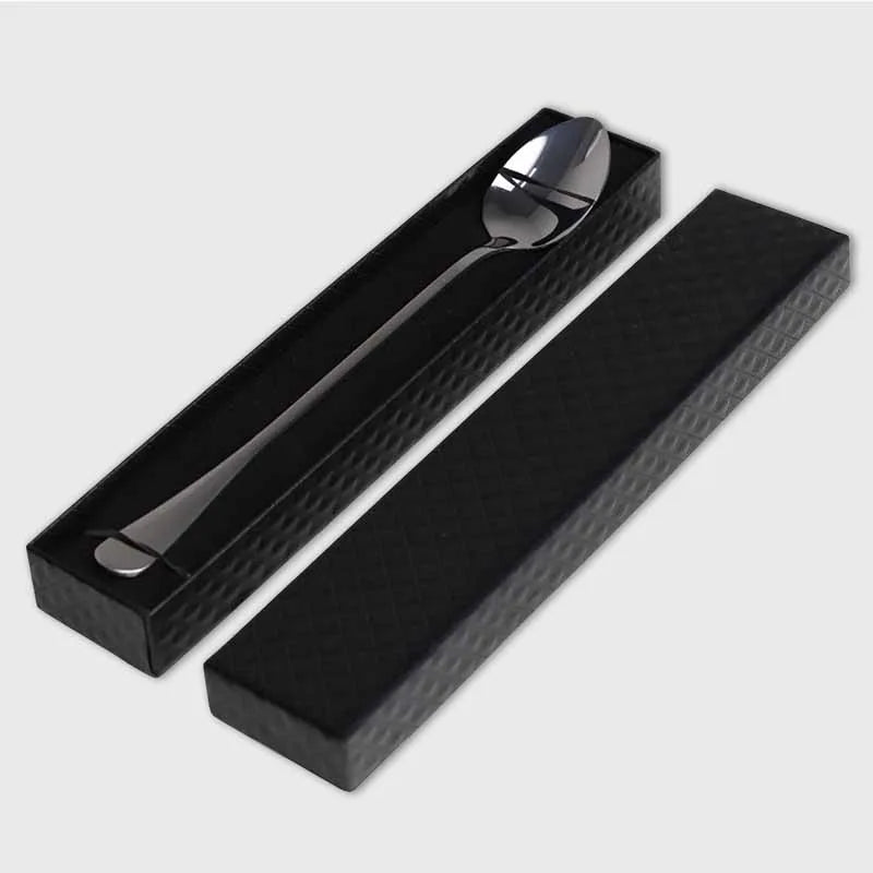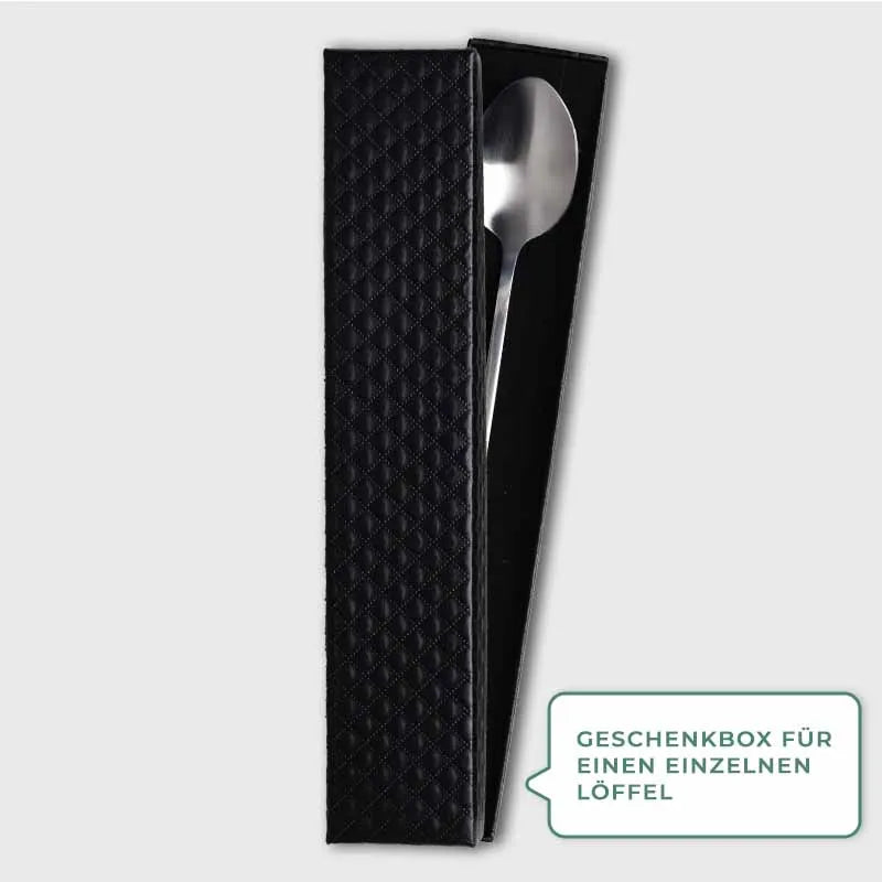 Geschenkbox für Müslilöffel, Dessertlöffel & Kaffeelöffel - 21 x 4 x 2.2 cm - Schwarzfarben - Verpackung für Geschenke für Familie, Partner & Paare