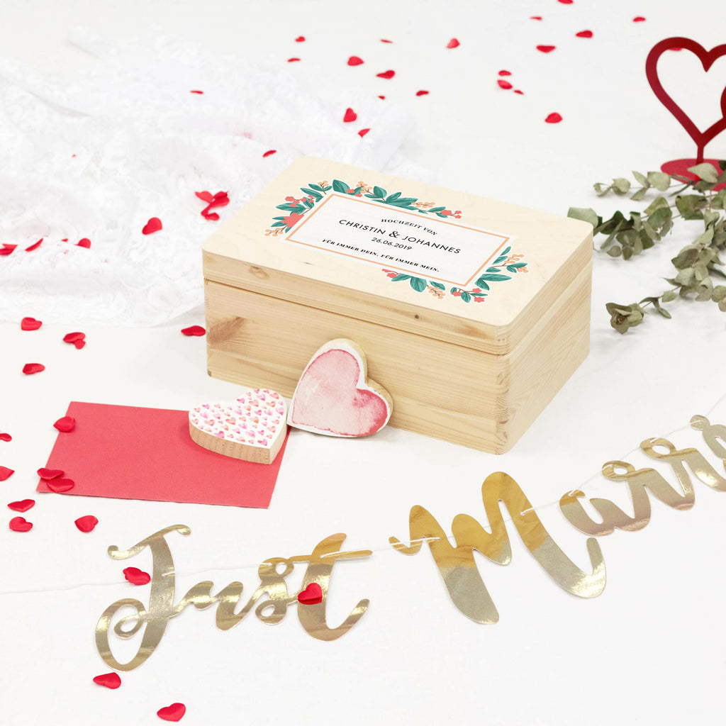 Geschenkbox zur Hochzeit - Personalisiert - Beeren Motiv - Natur - Holz FSC®