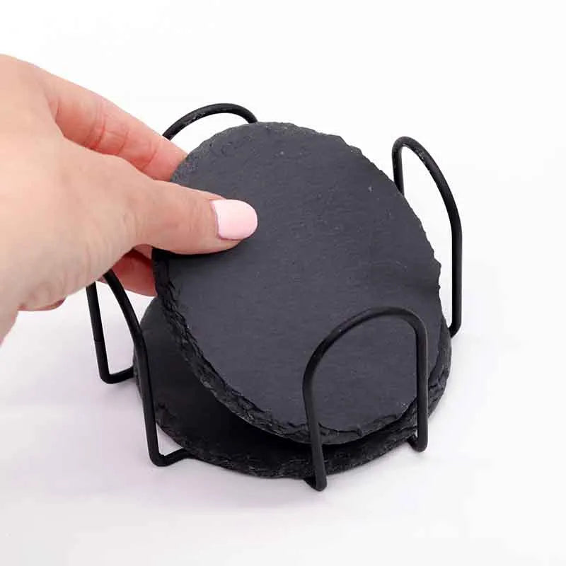 Getränkeuntersetzer aus Schiefer für Bar & Küche - 4er, 8er, 24er Set, rund - Untersetzer für Getränke | Geschenkidee für Familie & Freunde