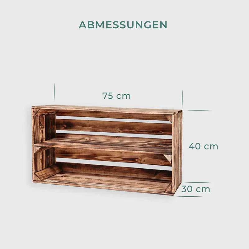 Große Vintage Holzkiste - ca. 75x40x30cm, Geflammt - Weinkiste mit Regalboden Lang | Möbelkiste - Schuhregal
