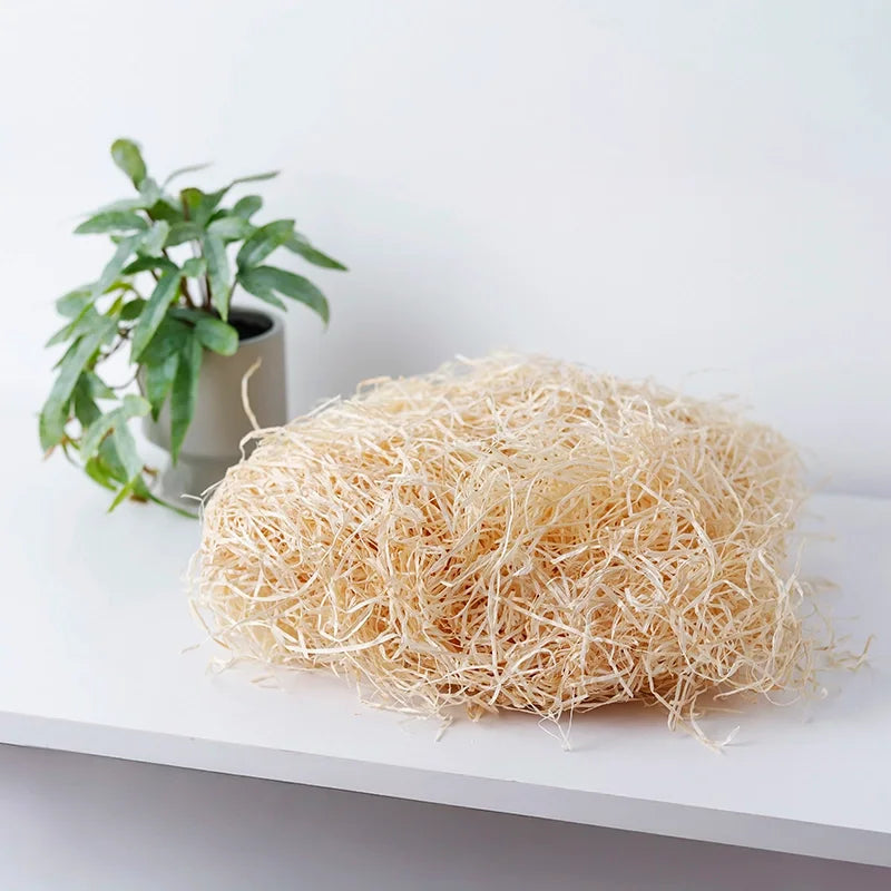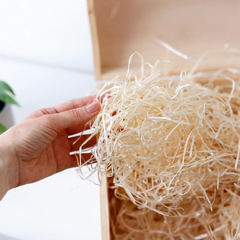 Holzwolle Natur - 100% Öko | Ideal als Füllmaterial für Deko, Geschenkkörbe, Geschenkverpackungen, Präsentkörbe - 50g | lebensmittelecht & hygienisch