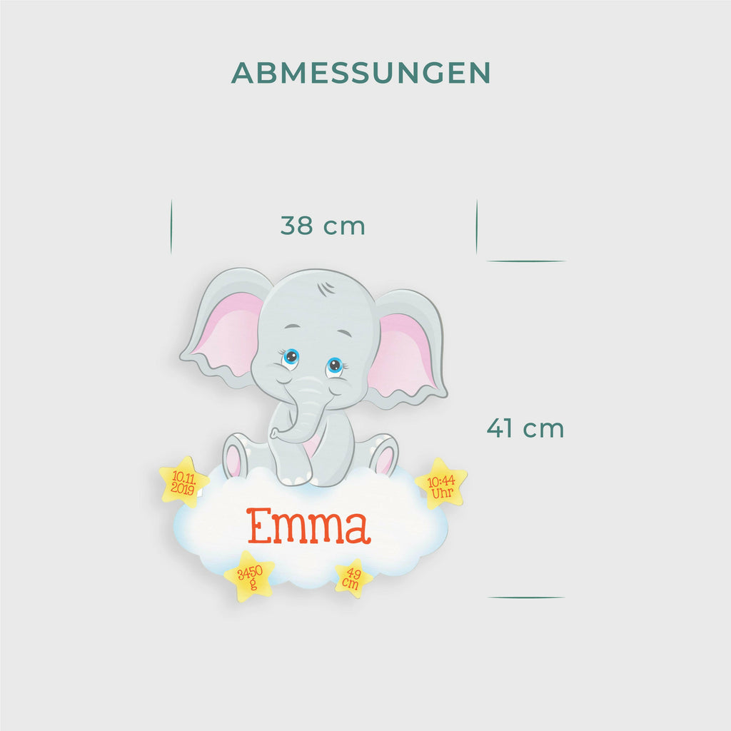 Schlummerlicht Baby mit Namen - Kinder Nachtlicht Personalisiert - Elefant | LED Holz Lampe