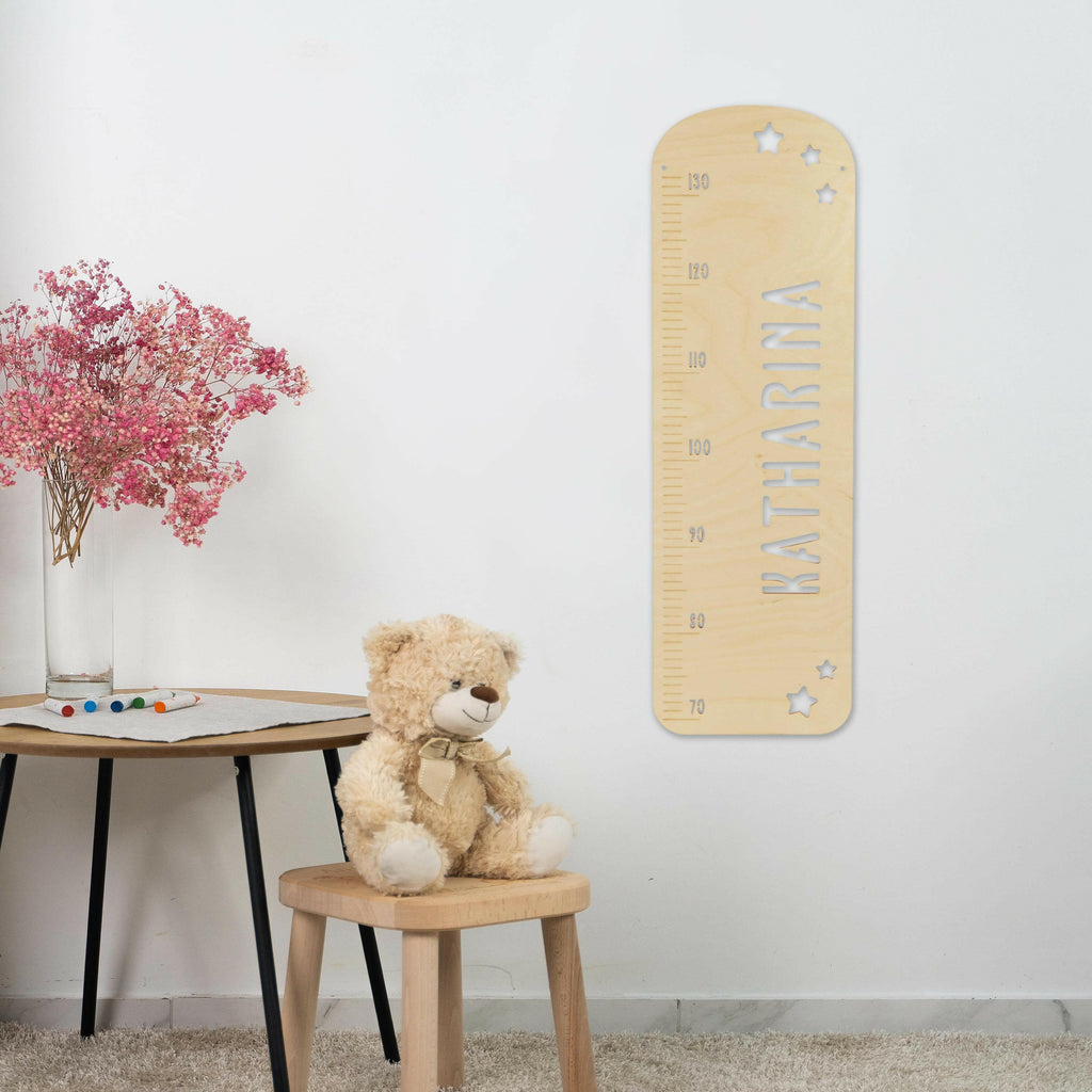 Messlatte für Kinder - Personalisiert mit Name - Sterne Motiv | ca. 72 x 23 cm, Holz | Geschenk fürs Kind