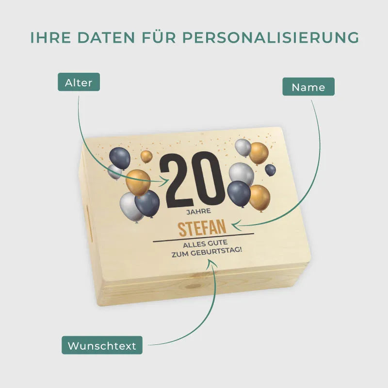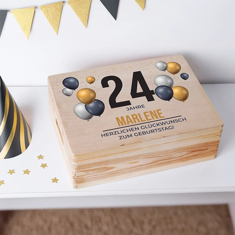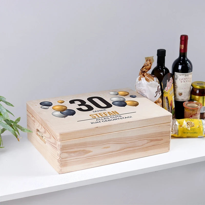 Personalisierte Erinnerungsbox mit Wunschtext - Geschenkkiste & Holzbox | Geschenk zum Geburtstag & Jubiläum - Natur, ca. 40 x 30 x 14 cm, FSC®