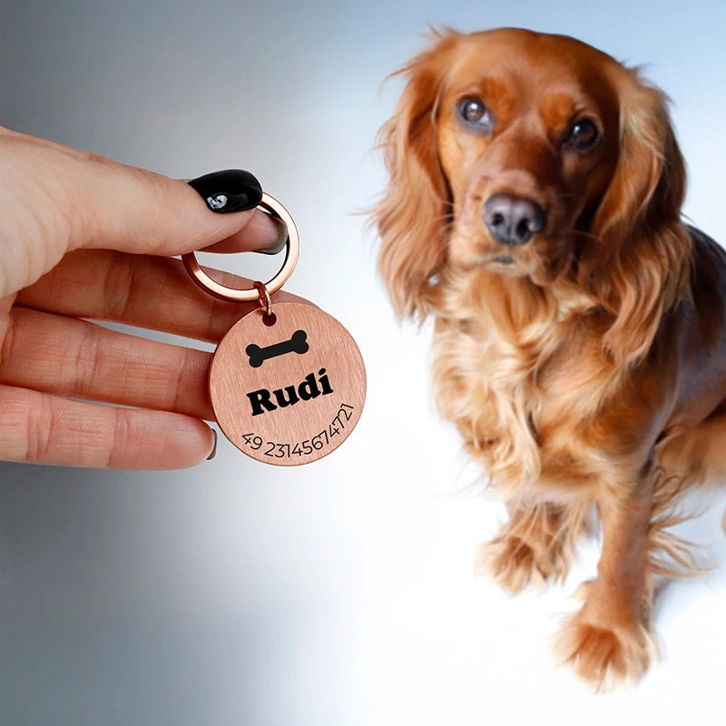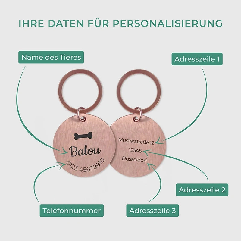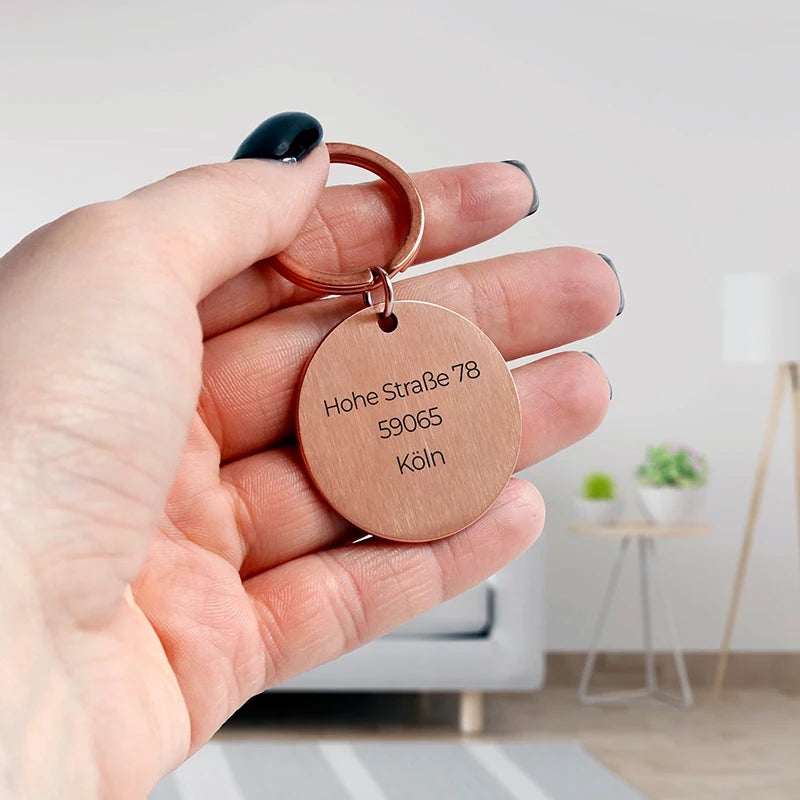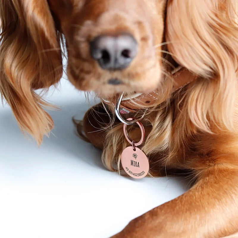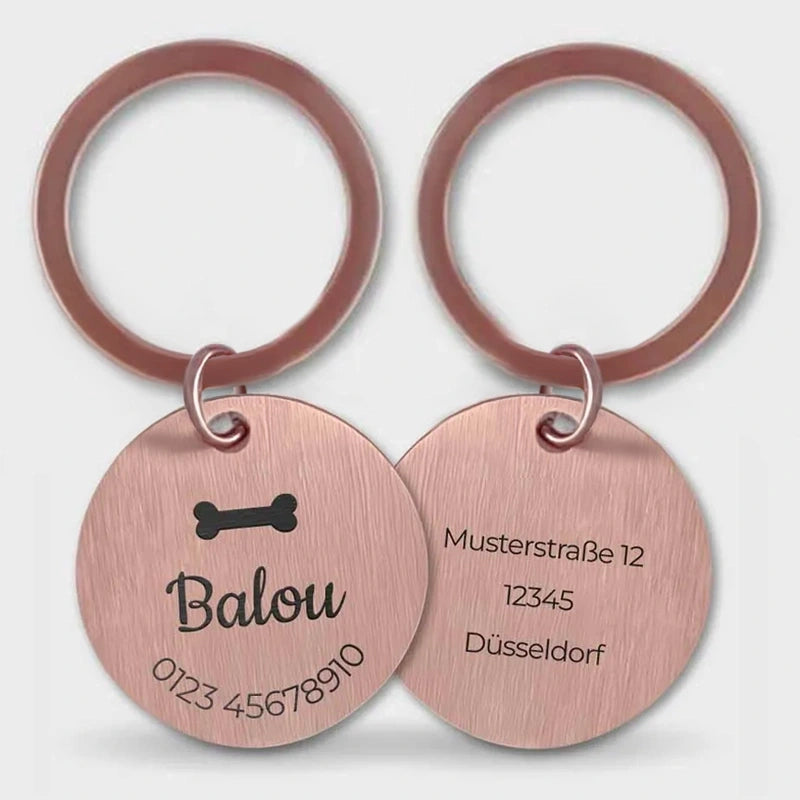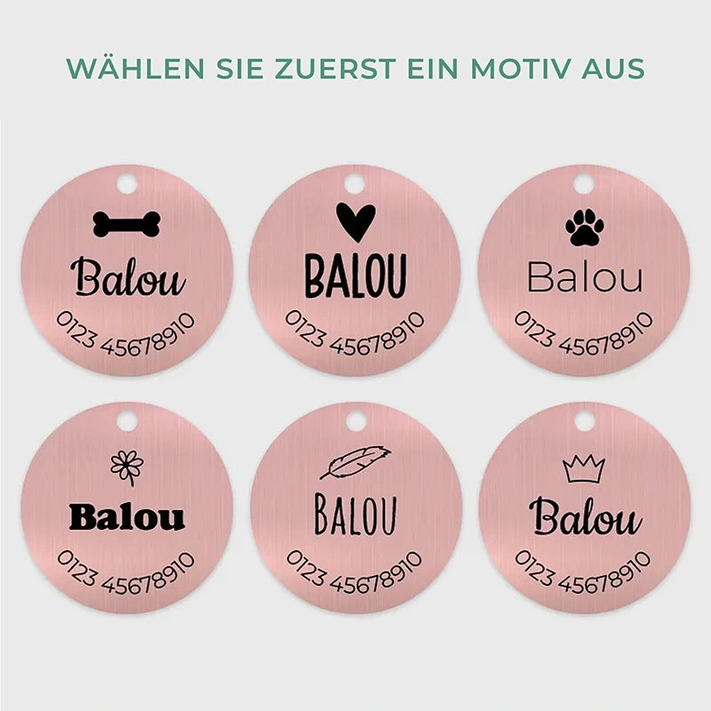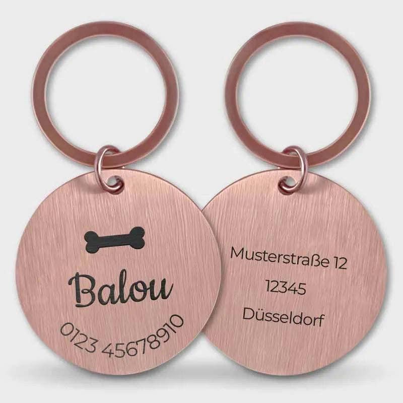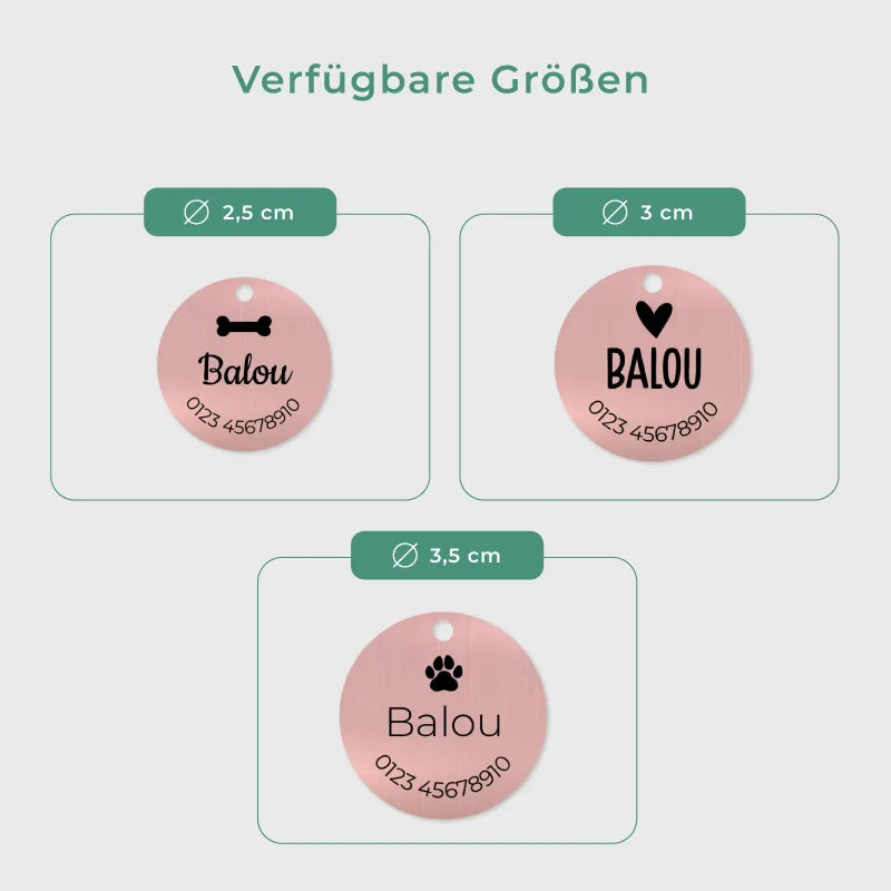 Personalisierte Hundemarke mit Gravur - Rundes Namensschild für Hunde, Rosa | Hundehalsband Anhänger personalisiert - Geschenk für Hund, Hundebesitzer