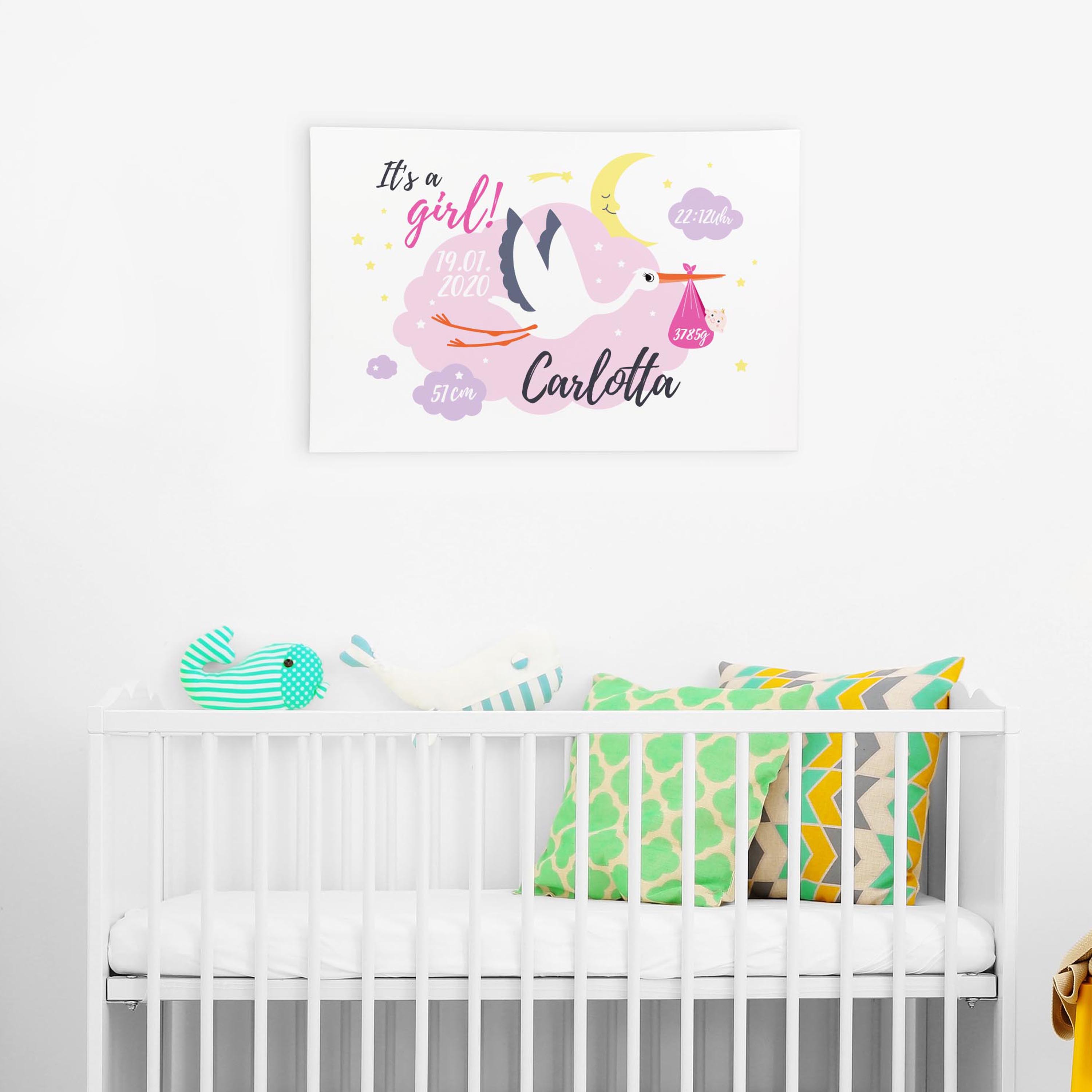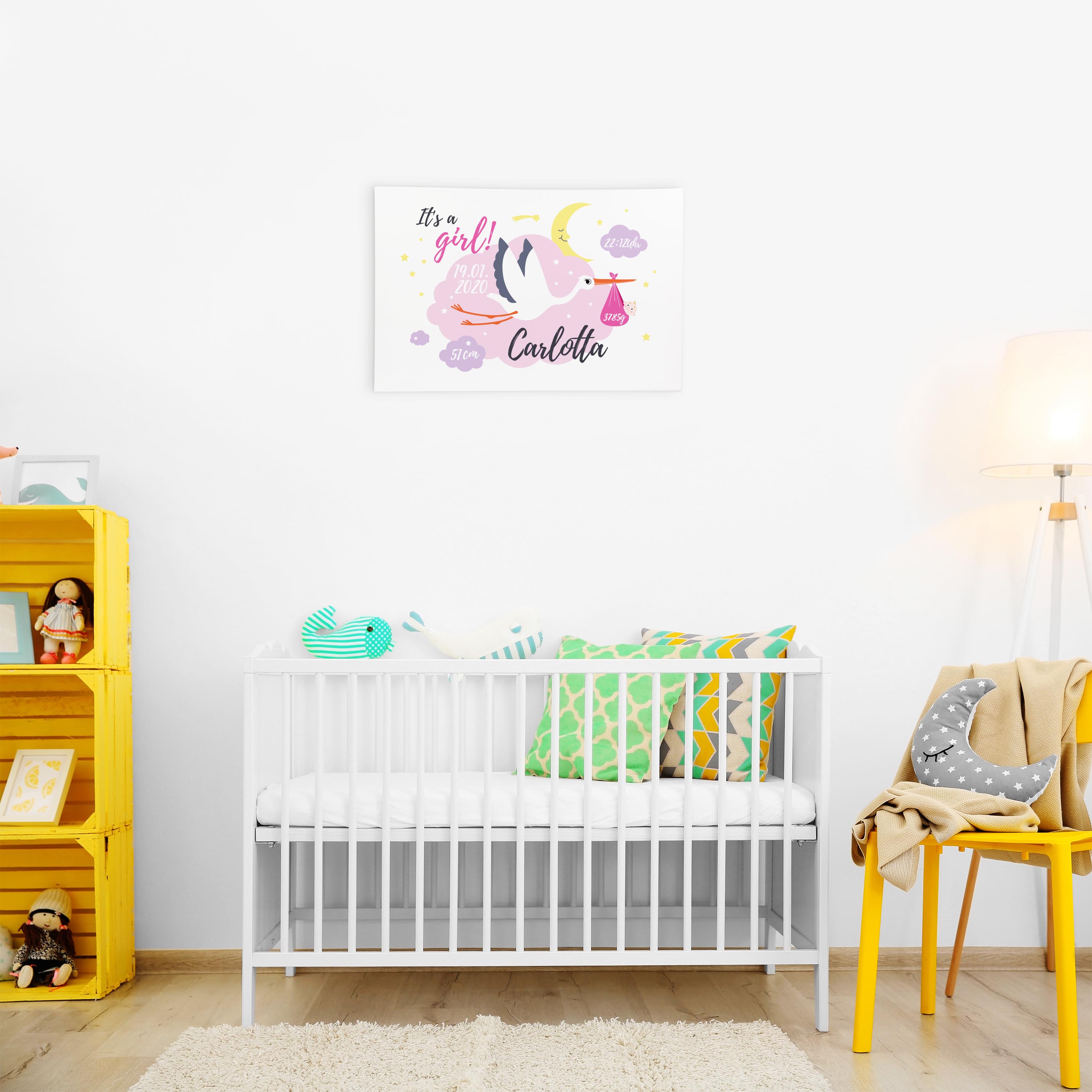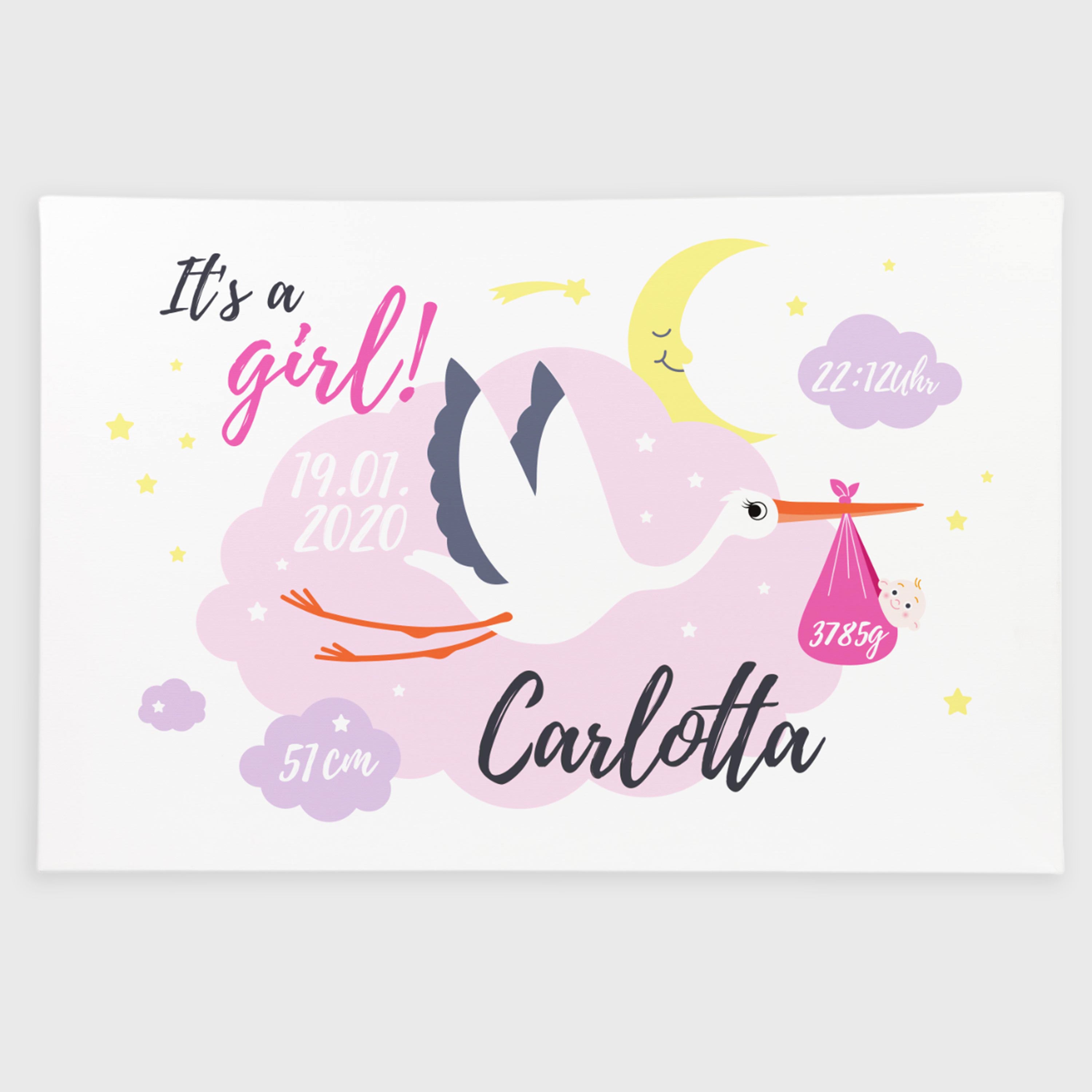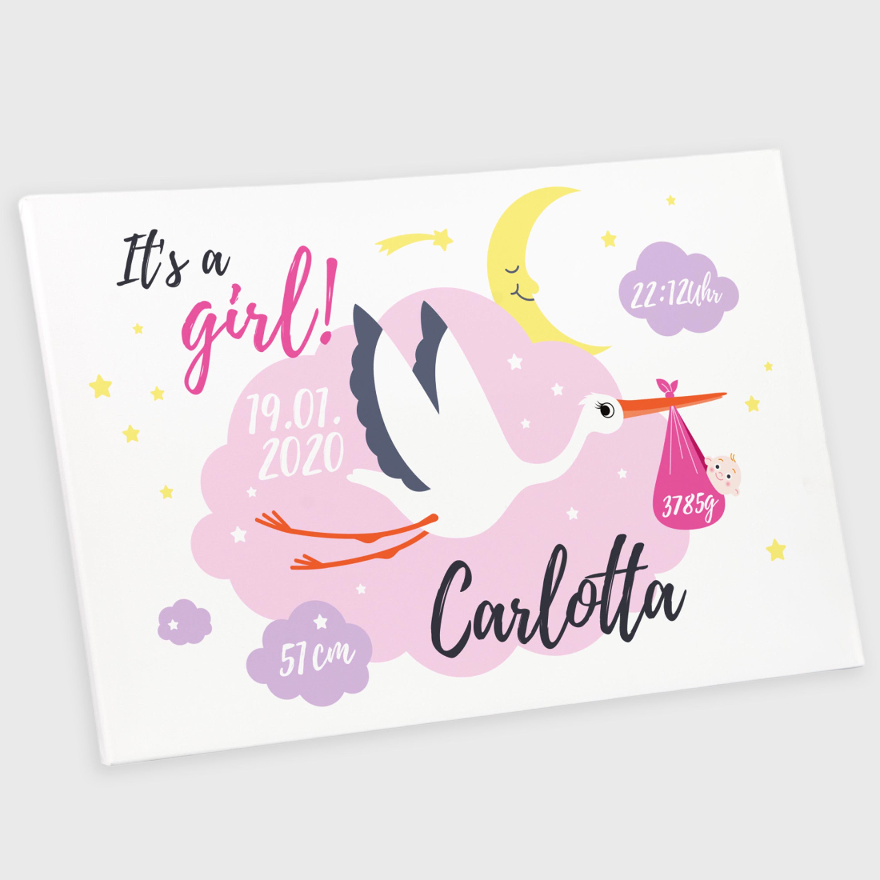 Personalisierte Leinwand zur Geburt & Taufe | Baby-Geschenk Mädchen & Erinnerungsstück - It's a Girl, 60 x 40 cm - Deko Bilder Kinderzimmer mit Gravur