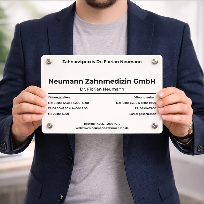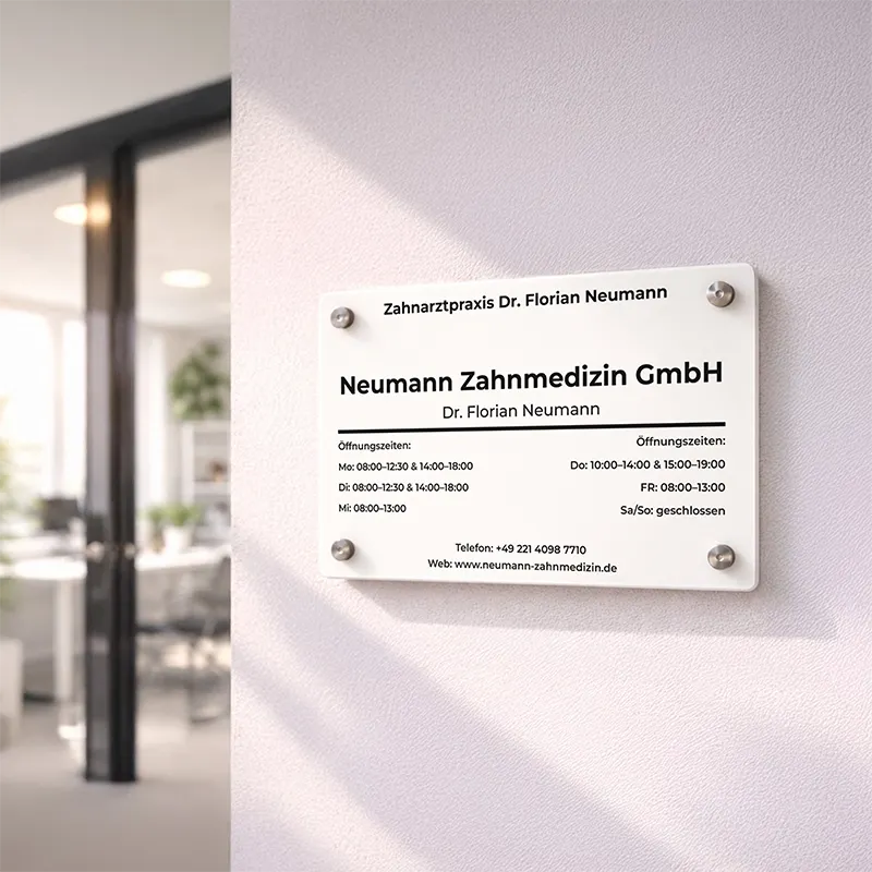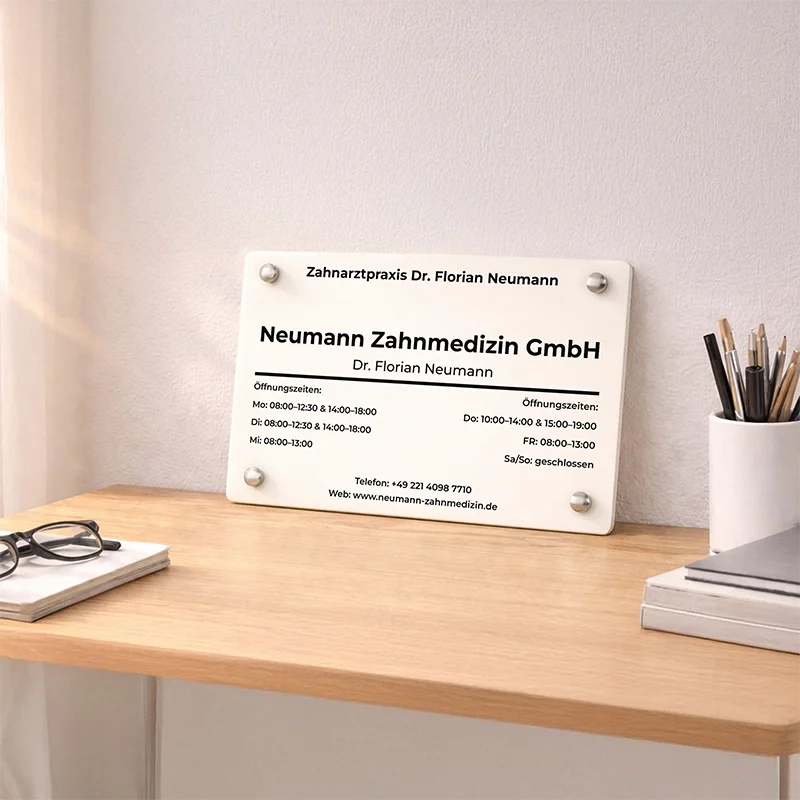 Türschild aus Acryl Personalisiert - Haustürschild mit Wunschtext, milchig | Wandschild als Geschenk für Familie & Freunde | 4 Größen & 4 Wandhalter