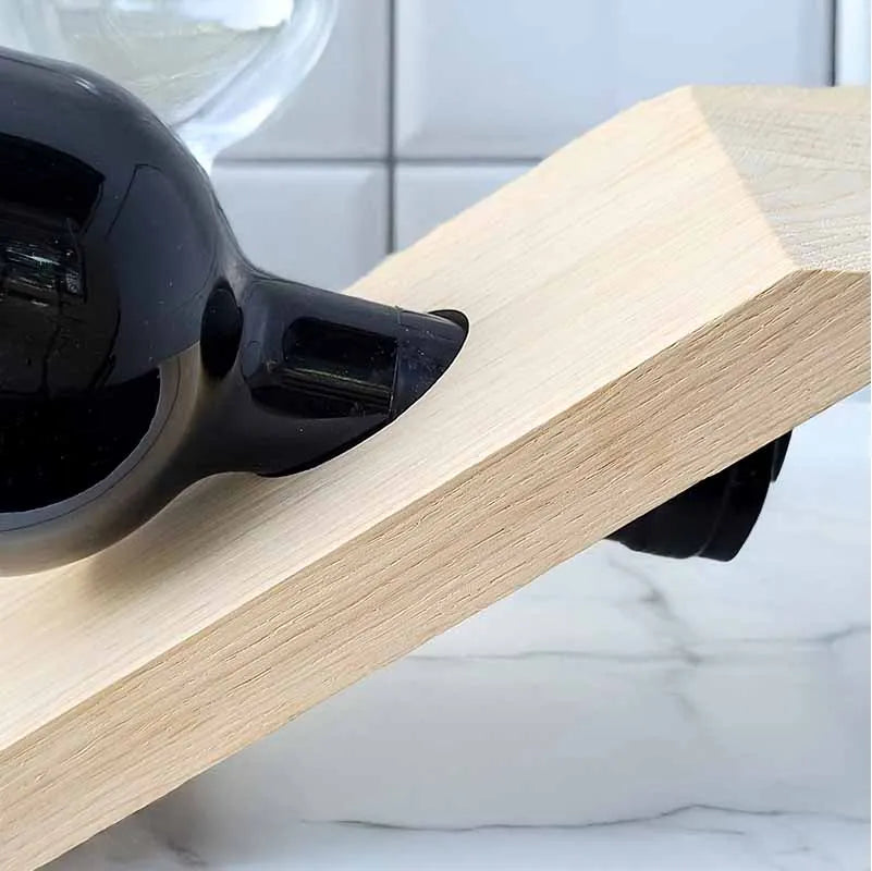Ein Weinständer aus Holz verkörpert Stil, Geschmack und pure Eleganz. Dieses handgefertigte Weinaccessoire ist ideal, um eine besondere Flasche Wein ansprechend zu präsentieren und gleichzeitig eine warme, natürliche Atmosphäre in Ihr Zuhause zu bringen. Ob im Wohnzimmer, im Esszimmer oder in der Hausbar – der Schwebender Flaschenständer fügt sich harmonisch in jedes Interieur ein und wird schnell zu einem Blickfang.