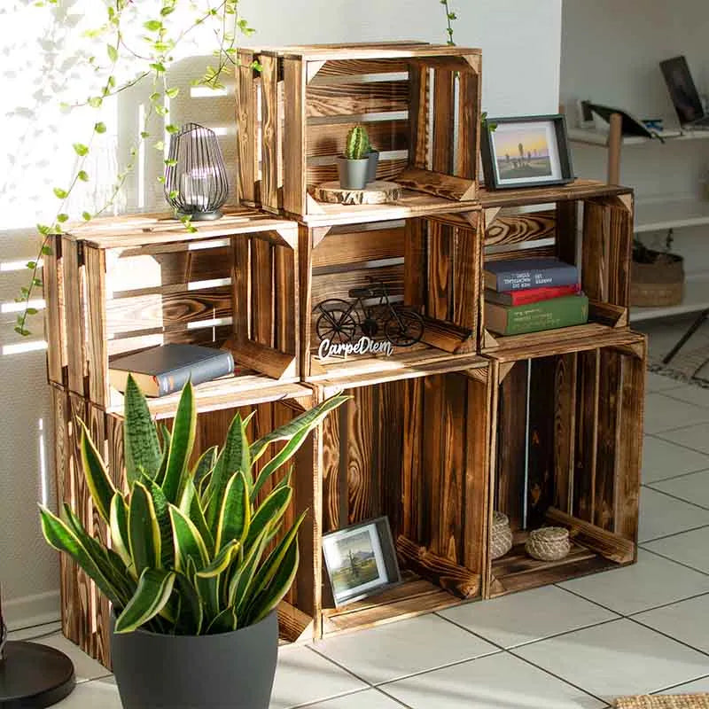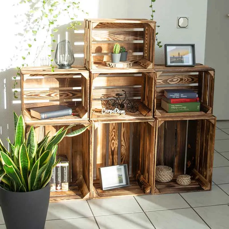 Mit einem dekorativen Regal aus Weinkisten richten Sie sich stilvoll und geschmackvoll ein und verleihen den Räumlichkeiten Ihres Zuhauses einen ganz individuellen Touch. Als Dekoration passen die Obstkisten in nahezu jeden Wohnraum und geben beispielsweise in Wohnzimmer, Küche, Diele oder im Flur ein gutes Bild ab.