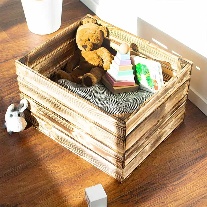 Gefertigt und geflammt werden die LAUBLUST Dekokisten mit viel Liebe und Hingabe. Die trockene Lagerung sorgt dafür, dass die gebrannten Apfelkisten perfekt für den Einsatz in Innenräumen geeignet sind. Mit vier Eckpfosten und insgesamt einundzwanzig Holzstegen je Kiste, die alle stabil mit Nägeln verbaut sind, sind die robusten Möbelkisten für eine lange Lebensdauer ausgelegt. Sie werden viel Freude daran haben.